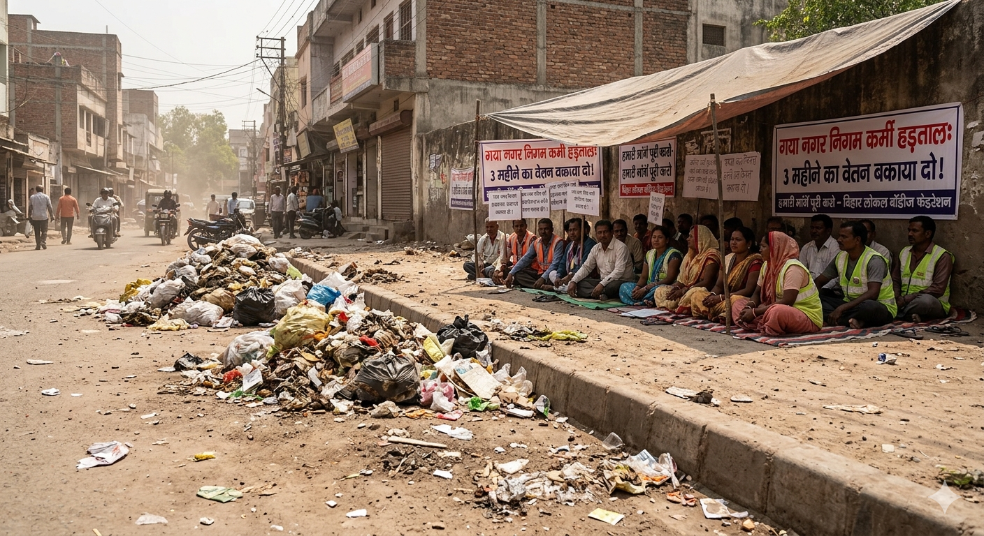 गया में सफाई व्यवस्था ठप: वेतन के लिए नगर निगम कर्मियों की ‘आर-पार’ की लड़ाई, सड़कों पर लगे कूड़े के ढेर