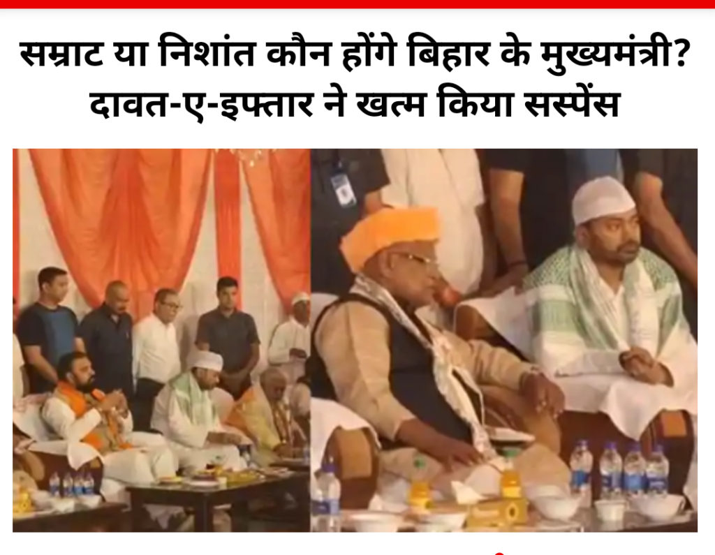 बिहार की राजनीति में इन दिनों सत्ता और नेतृत्व को लेकर चर्चाएं तेज हैं। नीतीश कुमार के संभावित बदलाव के बीच इफ्तार पार्टी की एक तस्वीर ने सियासी गलियारों में नई बहस छेड़ दी है। गुरुवार को जीतन राम मांझी के सरकारी आवास पर आयोजित इफ्तार पार्टी में कई बड़े नेता शामिल हुए। इस दौरान मुख्यमंत्री के बेटे निशांत कुमार और डिप्टी सीएम सम्राट चौधरी की मौजूदगी खास चर्चा में रही।