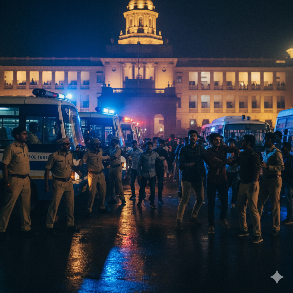 बेगूसराय, बिहार: बिहार के बेगूसराय जिले में पिछले कई दिनों से अपनी मांगों को लेकर अड़े होमगार्ड अभ्यर्थियों पर प्रशासन ने देर रात बड़ी कार्रवाई की है। समाहरणालय परिसर में आमरण अनशन पर बैठे 400 से अधिक चयनित अभ्यर्थियों को पुलिस ने हिरासत में ले लिया है। इस कार्रवाई के बाद इलाके में तनावपूर्ण स्थिति बनी हुई है और भारी संख्या में पुलिस बल की तैनाती की गई है।