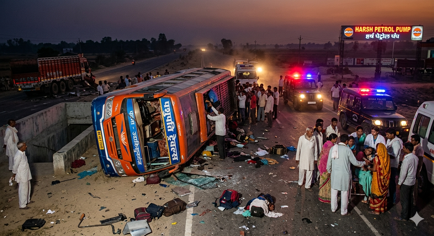हादसे के वक्त बस में करीब 40 यात्री सवार थे। टक्कर लगते ही बस सड़क किनारे बने सब-वे के पास जाकर पलट गई। सुबह का वक्त होने के कारण अधिकतर यात्री नींद में थे, जिससे किसी को संभलने का मौका नहीं मिला।