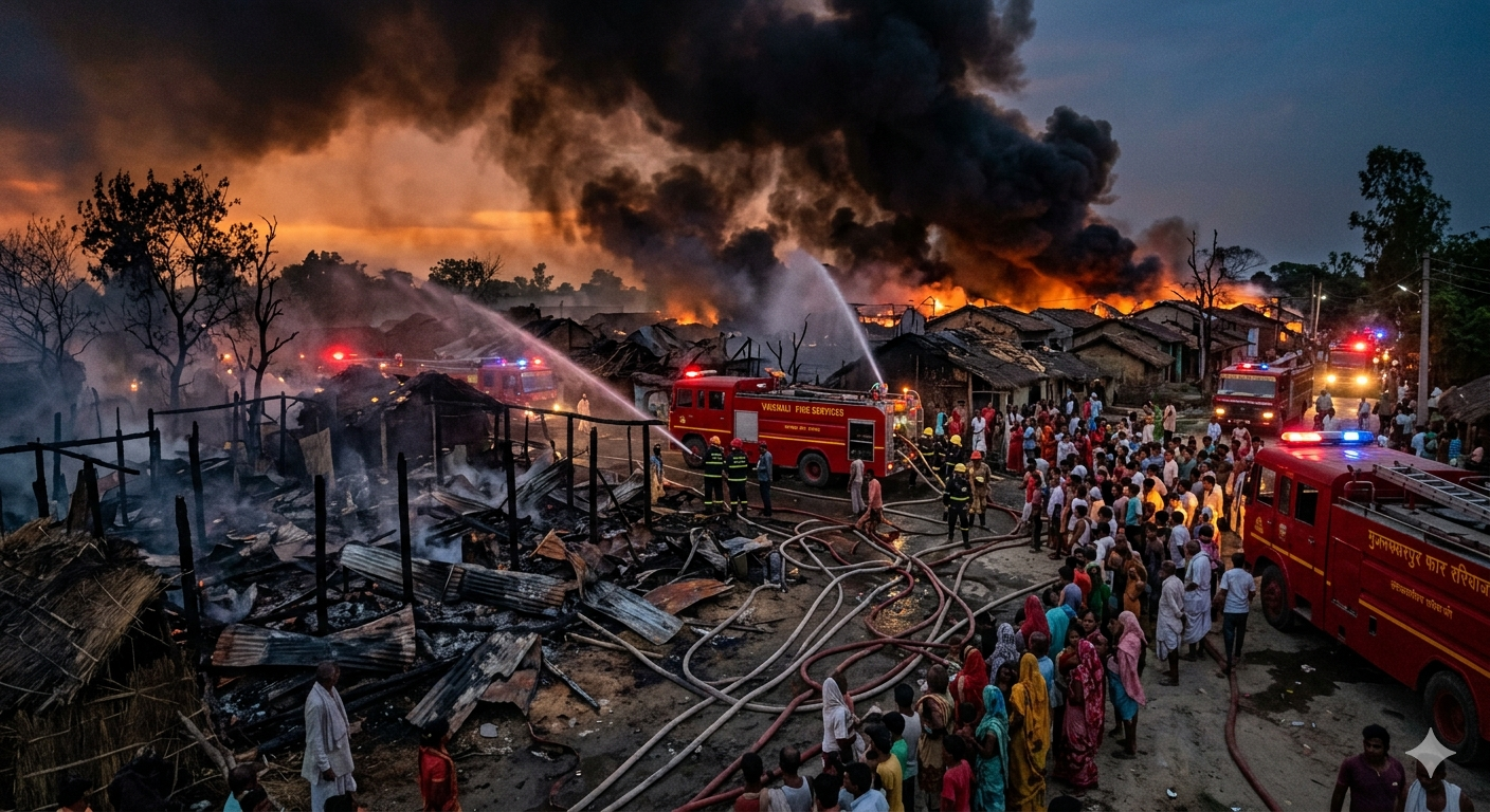 मुजफ्फरपुर में तांडव: एक के बाद एक फटे कई सिलेंडर, केशोपुर गांव में भीषण आग से 18 घर स्वाहा; लाखों की संपत्ति राख