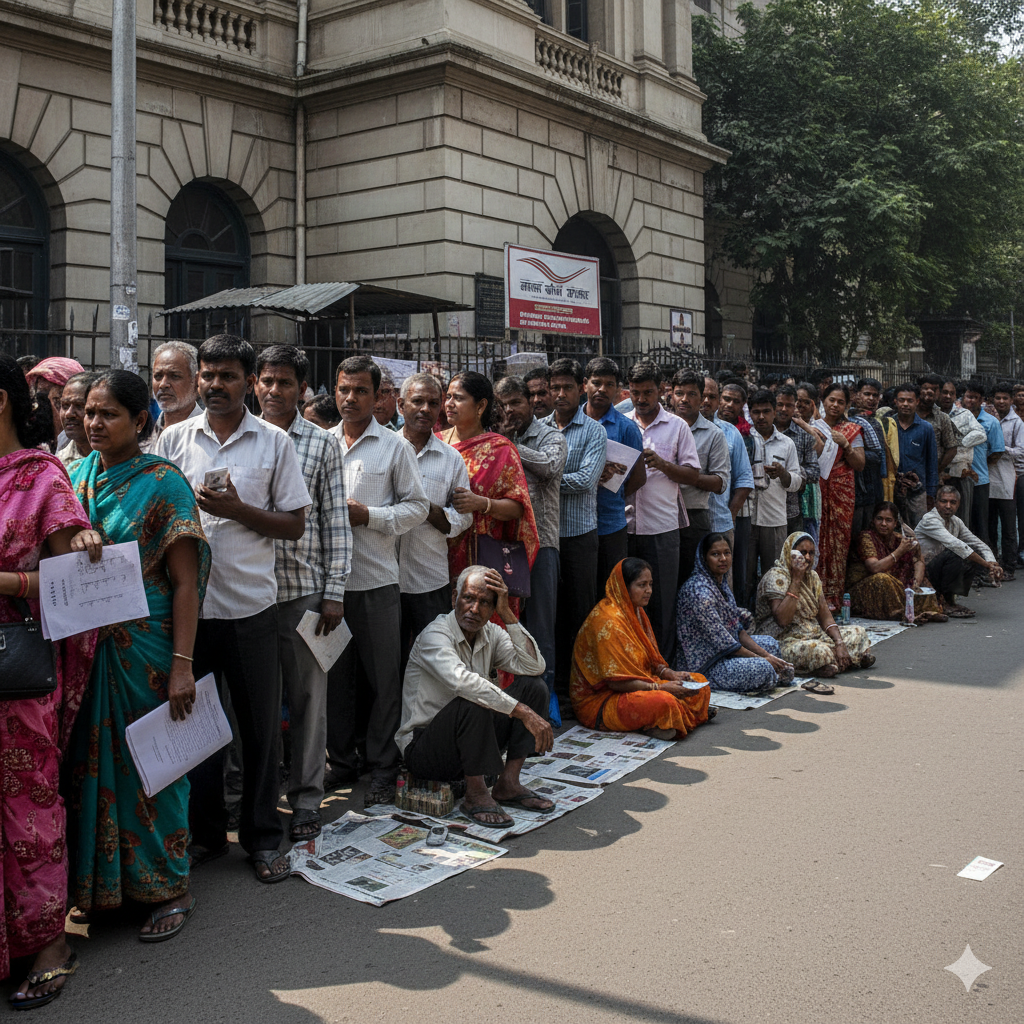 - तीसरा चक्कर: घंटों लाइन में लगने के बाद भी काम नहीं हुआ।